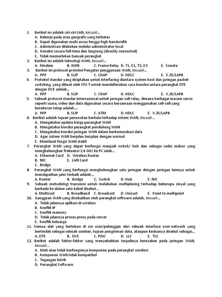 Soal Teknologi Jaringan Berbasis Luas Kelas Xi Tkj