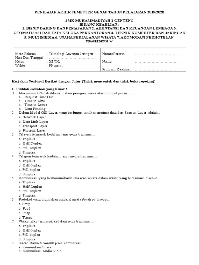 Latihan Soal Semester Ganjil Teknologi Layanan Jaringan Kelas Xi K13 Ta 2018 2019 Vredepaix Doc Soal Ujian Teknologi Layanan Komputer Semester 2 Dam T H E An Academia Edu. Soal uts kwu pilihan ganda kunci jawaban kelas xii soal uts 1 kewirausahaan kelas xii smk semester 1 ta 2017 2018.
