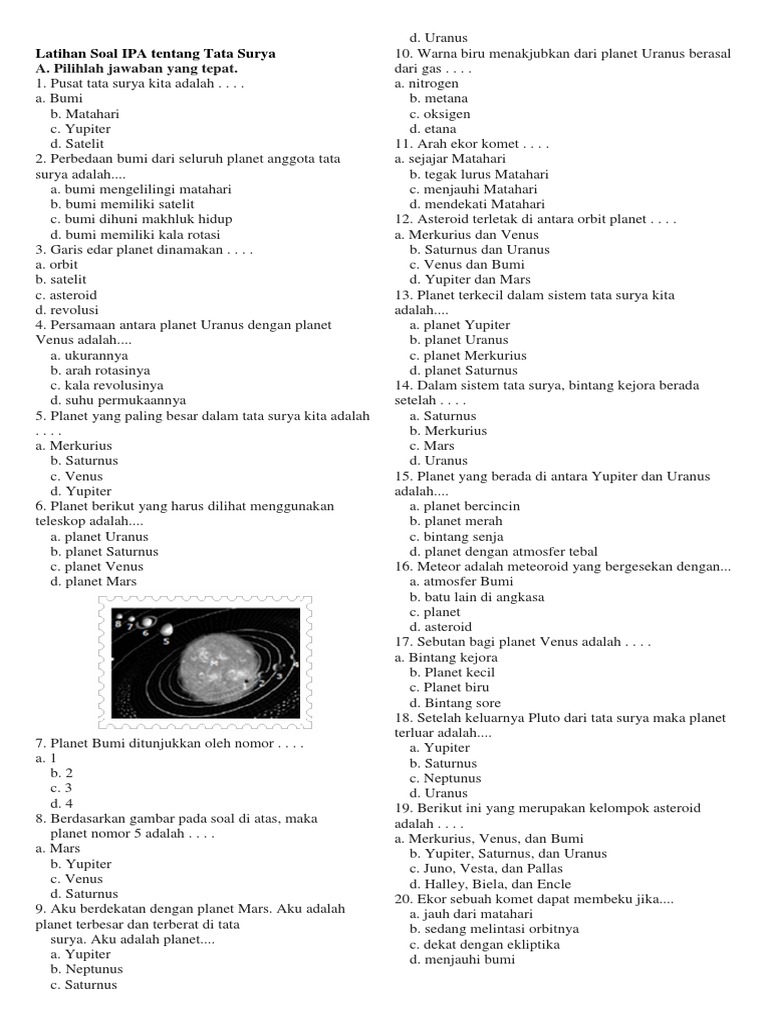 Soal Tentang Tata Surya Kelas 6 Guru Galeri Cute766